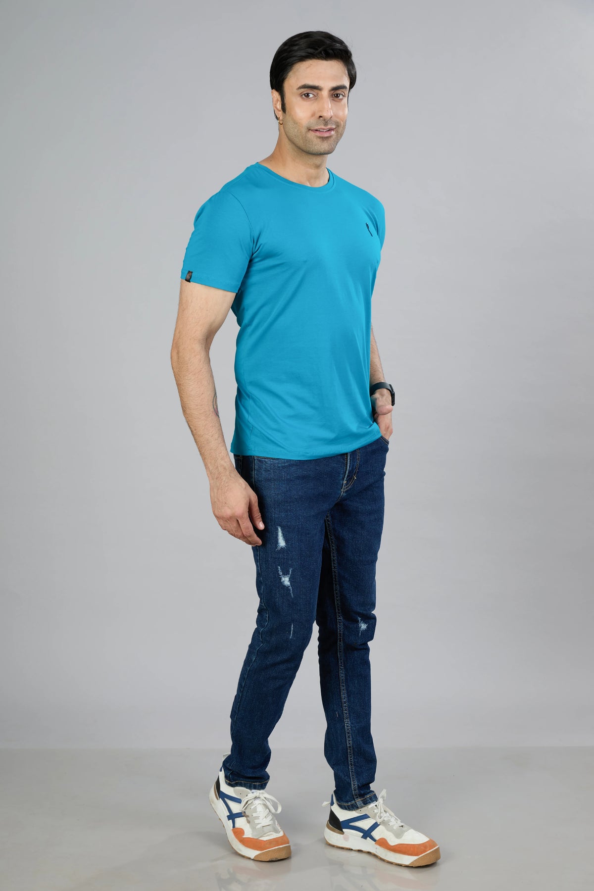 This Stride men's T-shirt features a dark navy cotton blend fabric designed for comfort and durability. Its half sleeves and classic crew neck offer a timeless fit, while the graphic print adds a distinctive style element. Ideal for casual wear, this T-shirt combines quality materials with contemporary design for everyday versatility.