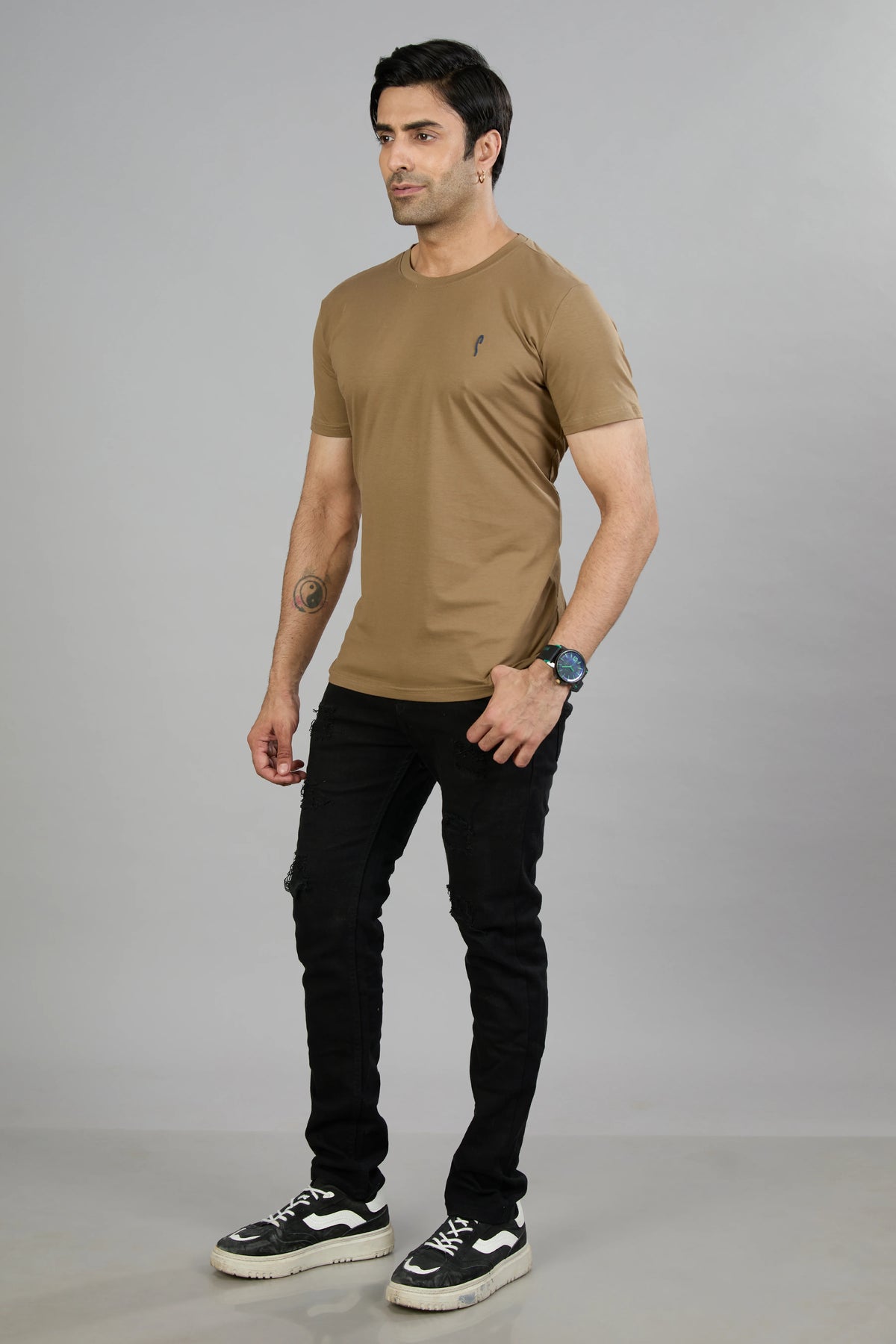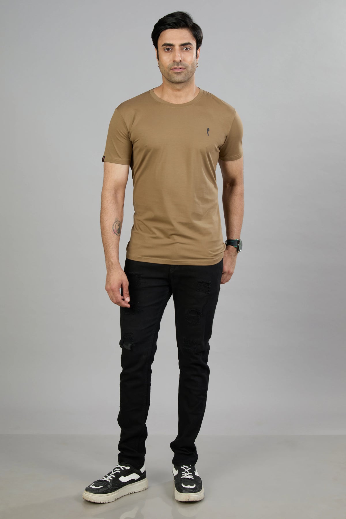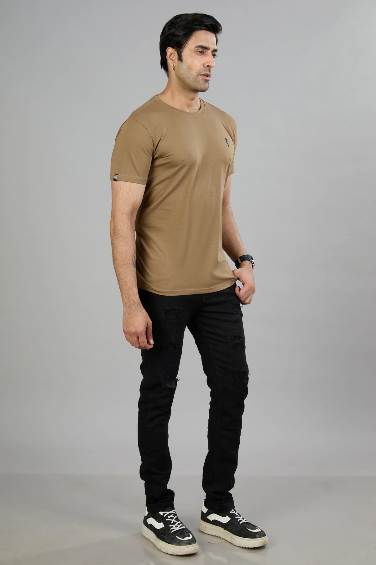 This Stride men's T-shirt features a dark navy cotton blend fabric designed for comfort and durability. Its half sleeves and classic crew neck offer a timeless fit, while the graphic print adds a distinctive style element. Ideal for casual wear, this T-shirt combines quality materials with contemporary design for everyday versatility.