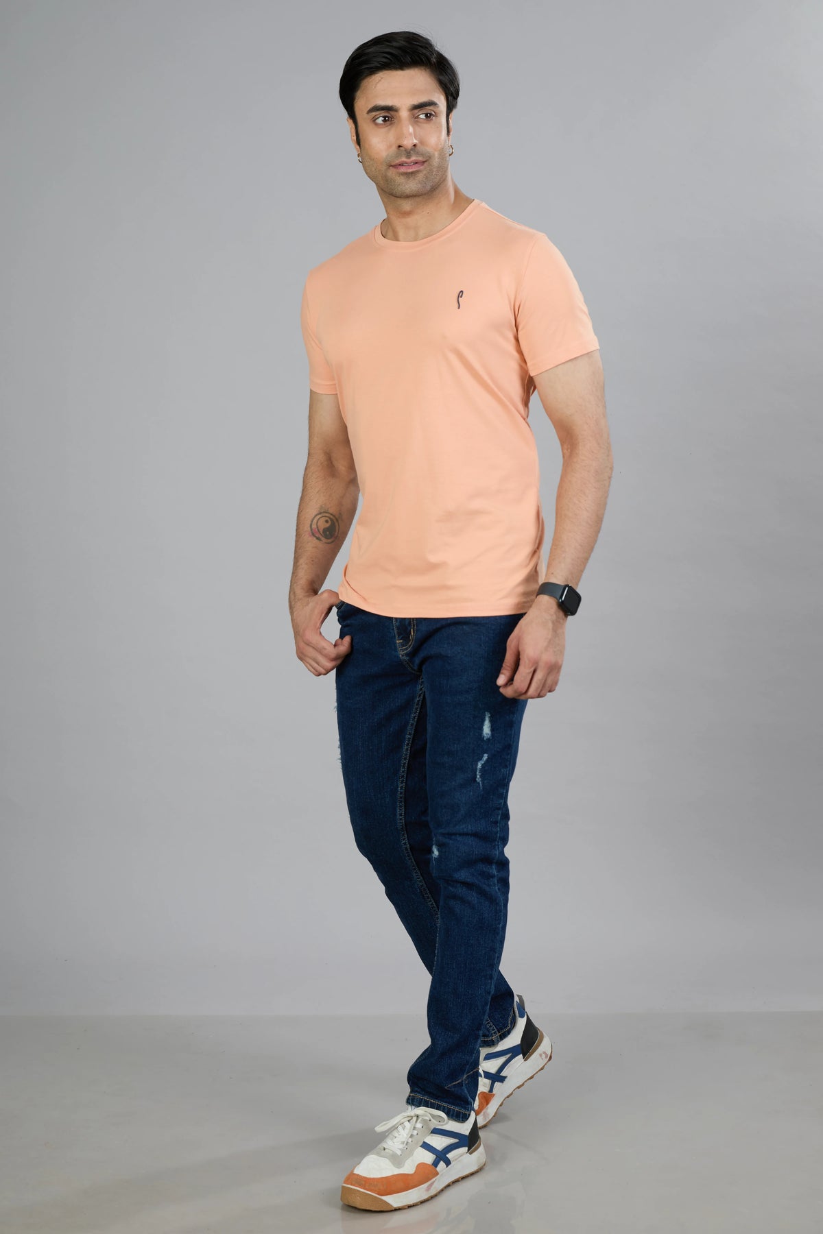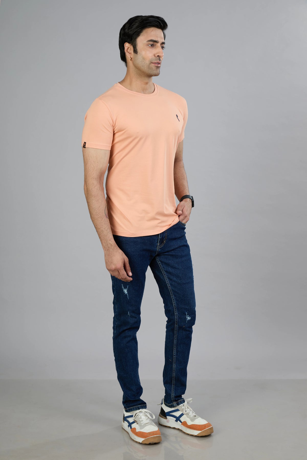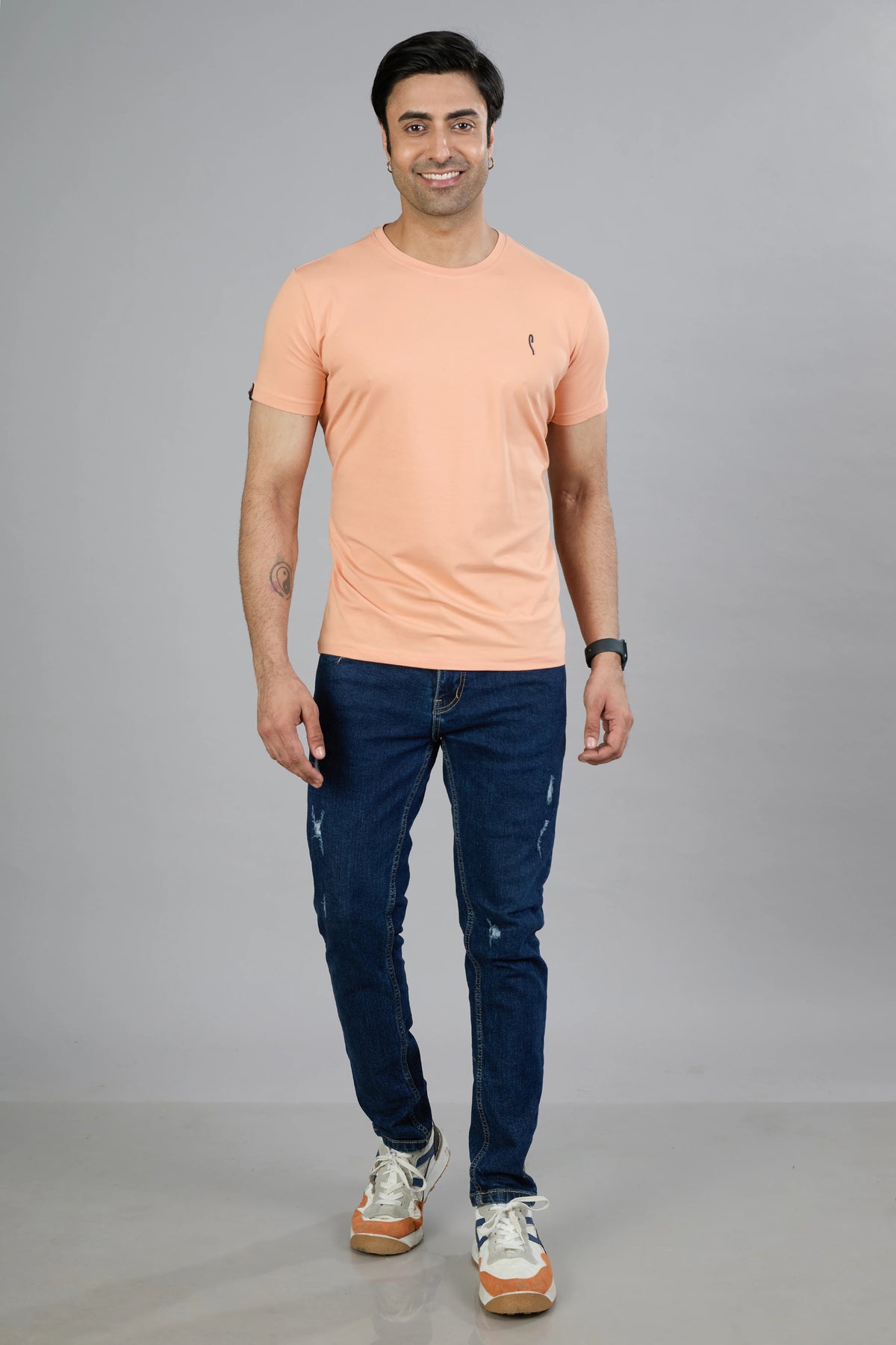 This Stride men's T-shirt features a dark navy cotton blend fabric designed for comfort and durability. Its half sleeves and classic crew neck offer a timeless fit, while the graphic print adds a distinctive style element. Ideal for casual wear, this T-shirt combines quality materials with contemporary design for everyday versatility.